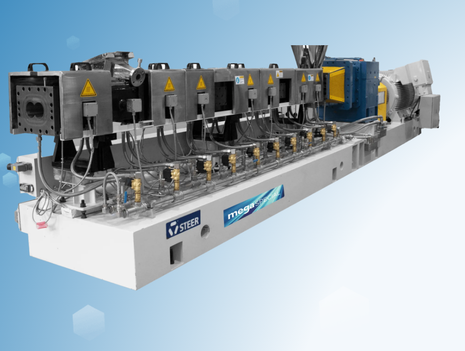 STEER’s mEGA series co-rotating twin screw extruder delivers exceptional performance with a competitive total cost of ownership. Engineered for high efficiency, this powerful extruder is backed by comprehensive aftermarket services that minimize downtime and maximize productivity. With a track record of proven reliability, the mEGA series features a platform used worldwide, offering the same advanced features in the extruder processing zone.
